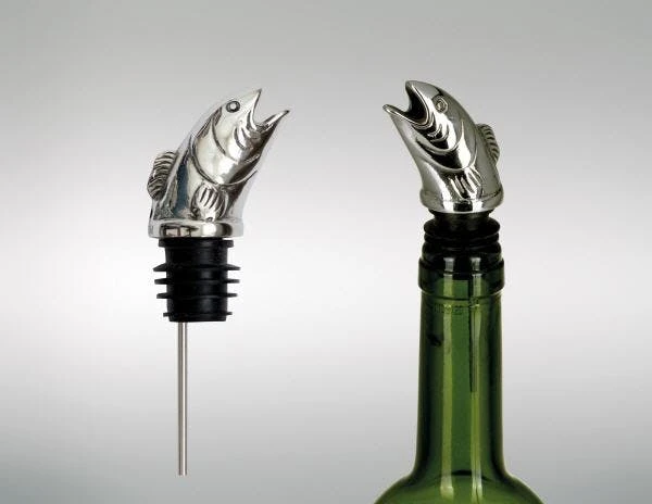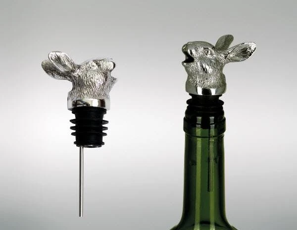 Flaschenausgießer im Steinbockmotiv aus Edelstahl. Der Flaschenausgießer hat einen Durchmesser von 3,0 cm und eine Höhe von 4,5 cm.