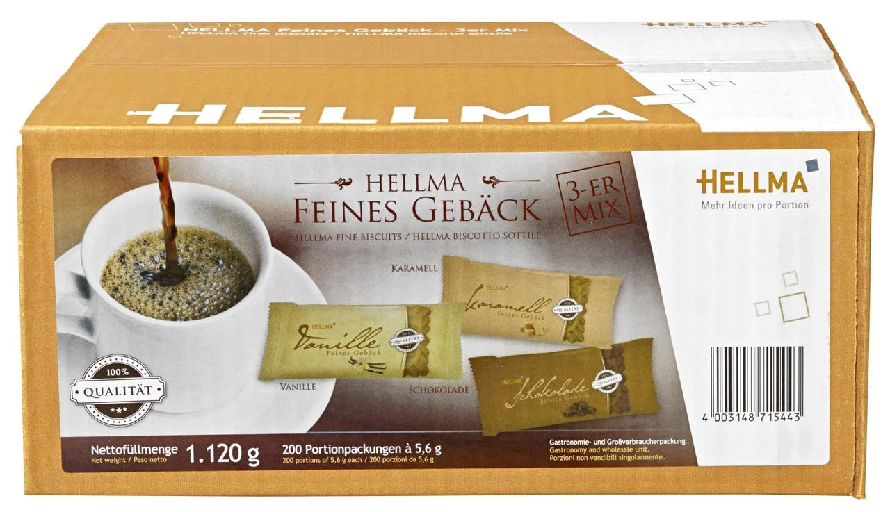 Hellma Crisp & Creamy Mix – Zwei verschiedene Geschmackssorten (mit Zitronen- oder Schokoladencremefüllung) einzeln verpackt im 200er Karton.