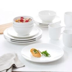 Kombiservice Harmony 30-teilig Eckig Porzellan Für 6 Personen Weiß Geschwungene Kanten