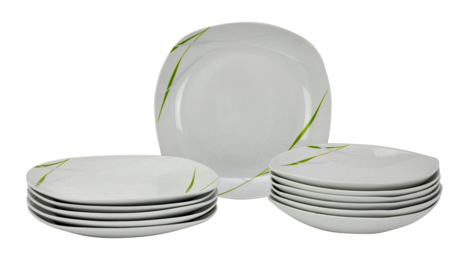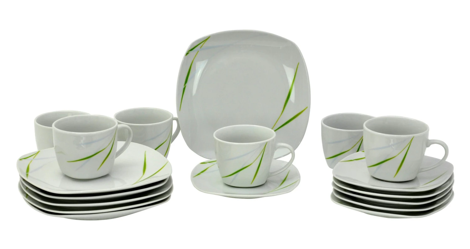 Die leicht eckige Form und das grün / graue Gräserdesign geben dem Kaffeeservice eine ganze besondere Ausstrahlung.