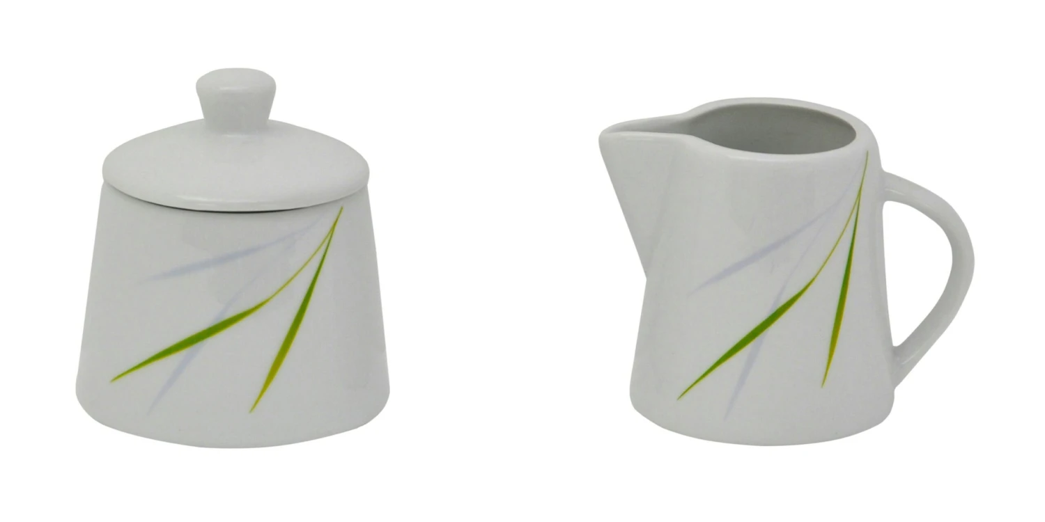 Die leicht eckige Form und das grün / graue Gräserdesign geben dem Kombiservice eine ganze besondere Ausstrahlung.