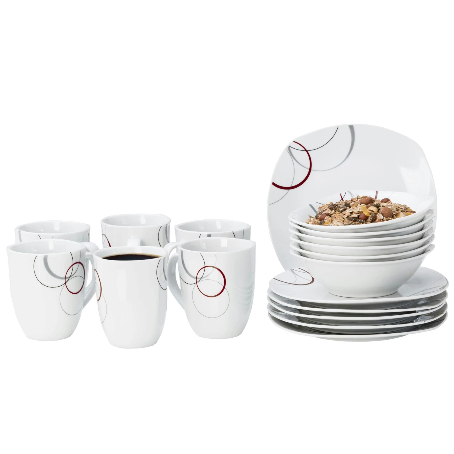 6 Kaffeetassen, 6 Untertassen, 6 Speiseteller, 6 Suppenteller, 6 Kaffeebecher, 6 Espressotassen,